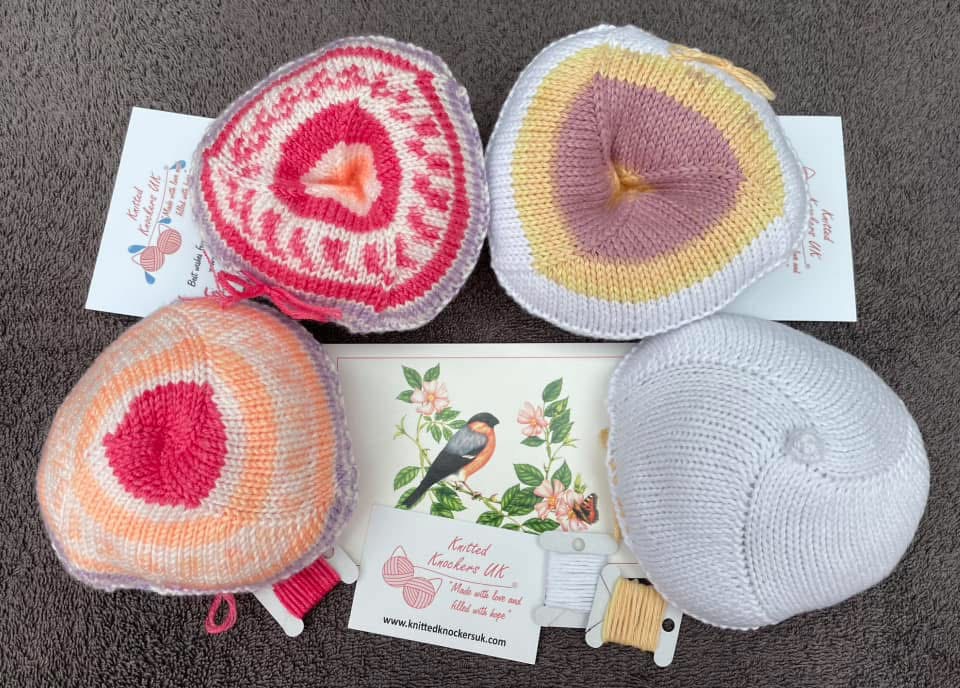Just to let you know that I received my order today. I am delighted with it. Please pass on my thanks to your volunteer for knitting it for me, her kindness has really touched me. I love my knitted knockers, the sizing is great and it is so comfortable to wear. Thanks once again.